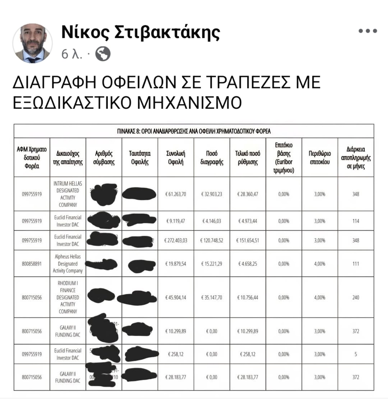 Ιδιωτικός υπάλληλος με ακίνητη περιουσία, Από τις 450.565 ευρώ συνολικής οφειλής υπήρξε διαγραφή 208.000 ευρώ προς τράπεζες/funds.